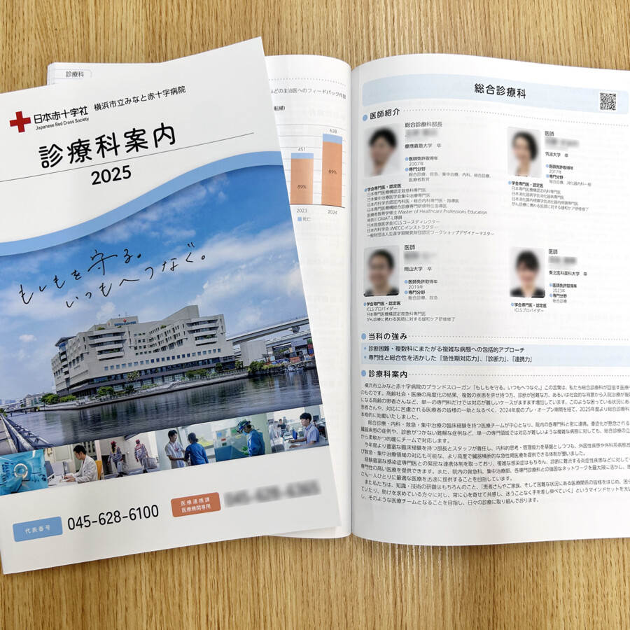 横浜市立みなと赤十字病院様の『診療科案内』を制作させていただきました。 この冊子は地域のクリニックや診療所などのいわゆる「かかり...